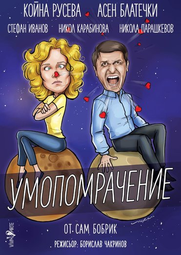 Това е #пиеса за мъжете, които се опитват да разберат жените и никога не успяват. За някои тя може да се окаже „твърде правдоподобна, за да е смешна”. Пълнокръвните образи и остроумните закачки превръщат „Умопомрачение” в брилянтна #комедия за живота на един мъж, който сякаш притежава всичко, но накрая цялото му съществуване се преобръща на 180 градуса. Режисьорът Борислав Чакринов превежда силния актьорски състав през тази забавна #комедия на обратите, създавайки един свеж спектакъл, който кара публиката да се залива от смях, но и да се замисли за превратностите на живота. Умело написаният текст е дело на награждавания американски писател Сам Бобрик, който е написал над 30 театрални #пиеси и е успешен сценарист на популярни телевизионни сериали като „Омагьосване”, „Семейство Флинстоун”, „Умирай умно”, „Шоуто на Анди Грифит” и др. Без да искаме да разкриваме интригата, мъжете ще понаучат едно-две неща по трудния начин, но дамите със сигурност ще заобичат „Умопомрачение”.
