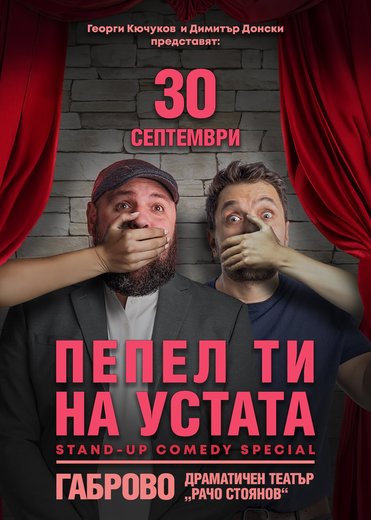 Един комик на сцена може да разсмее стотици. А тези двамата са карали хиляди да реват (от смях). След като не успяха да се скарат на първото си общо турне, Георги Кючуков и Димитър Донски решиха да опитат пак. Този път с чисто нови шеги, които още никой не е чувал, двамата идват в твоя град. Специално за всички истински фенове на стендъп комедията, както и за тези, които искат за пръв път да се докоснат до това изкуство. Няма нужда да си посипвате устата с пепел, защото те ще се изсмеят на всичко, което си мислите, но ви е страх да кажете.
